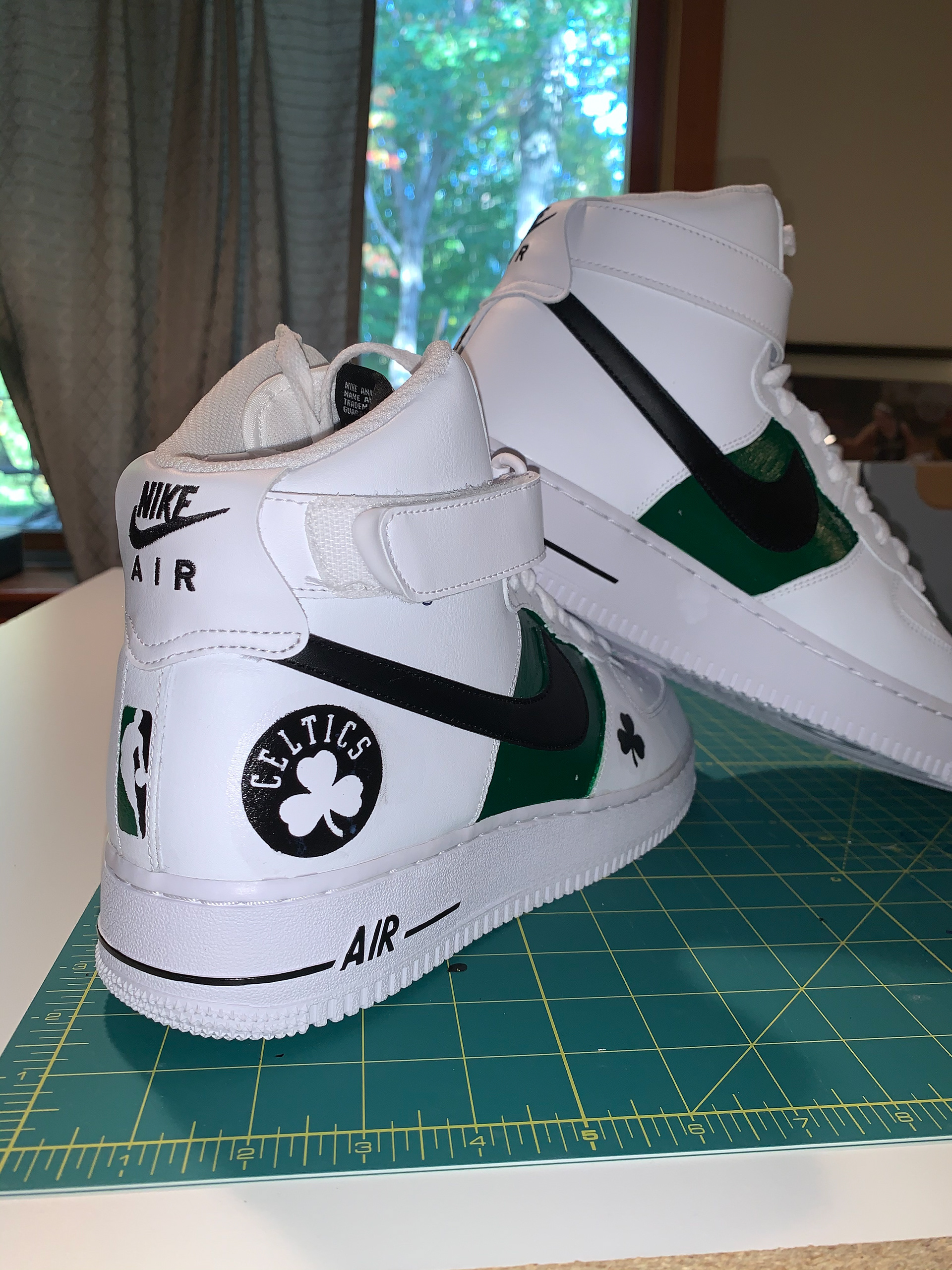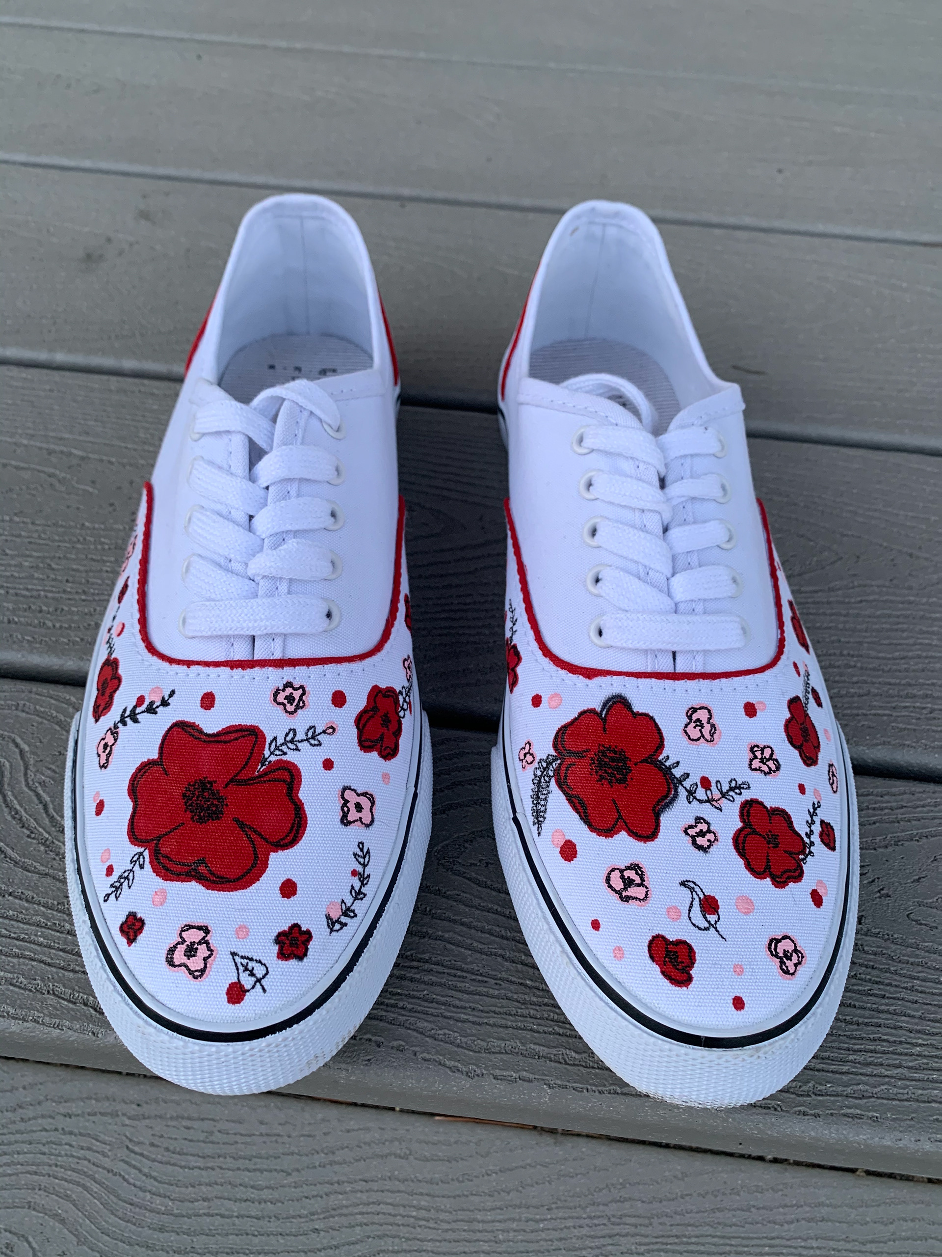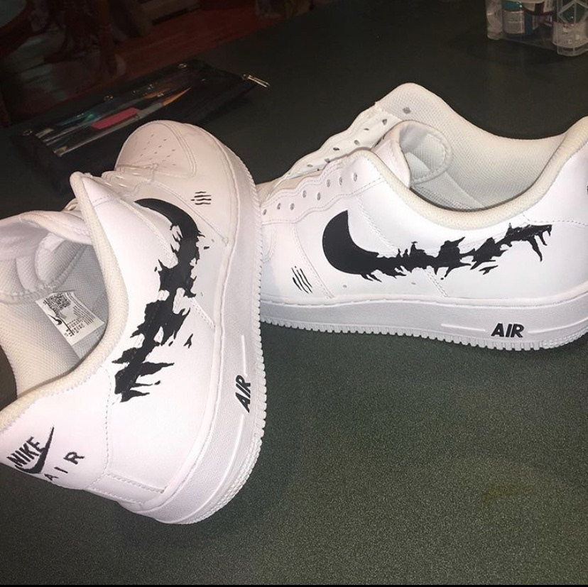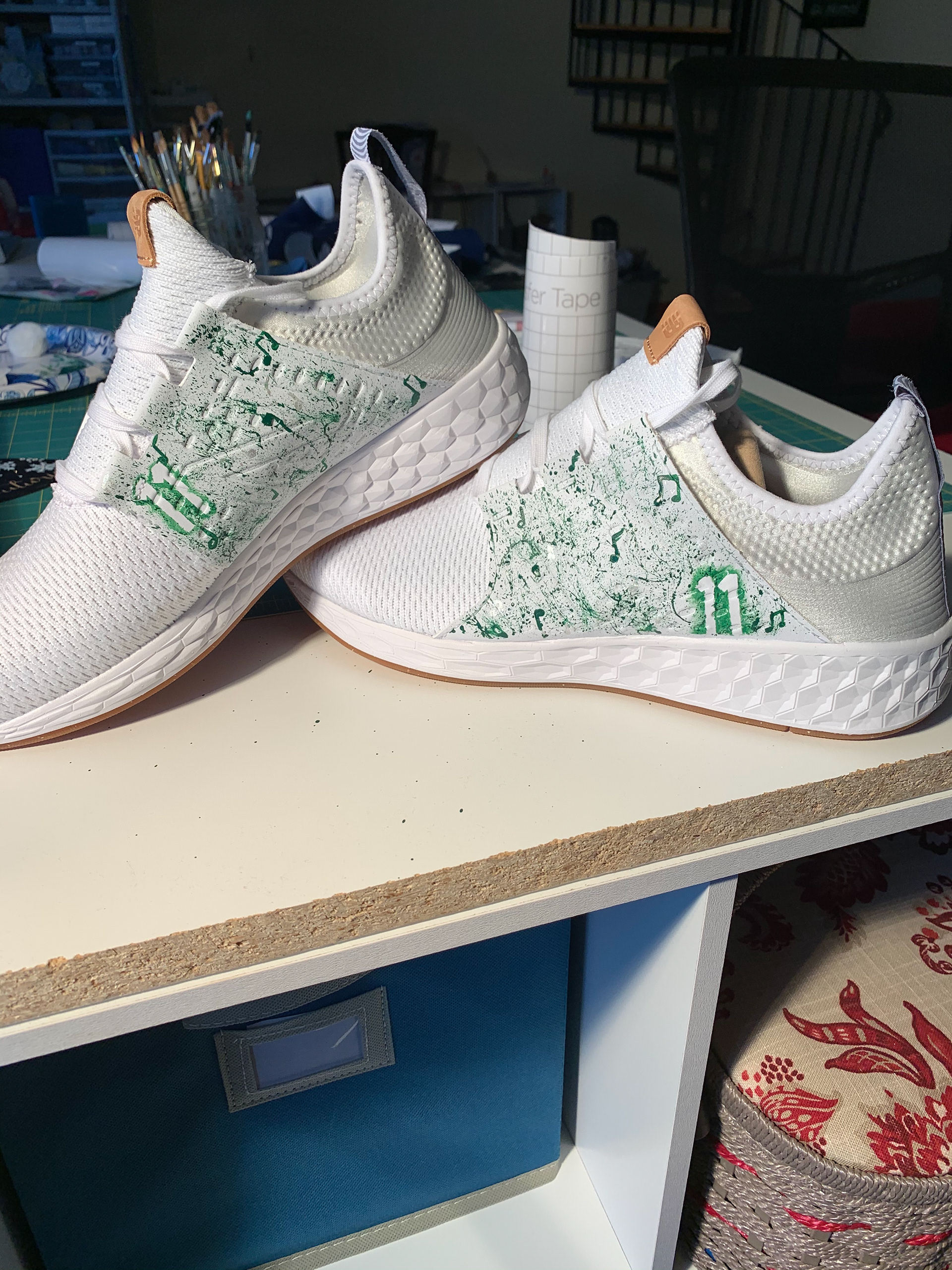 Mixed media creations, including custom sneaker art.
