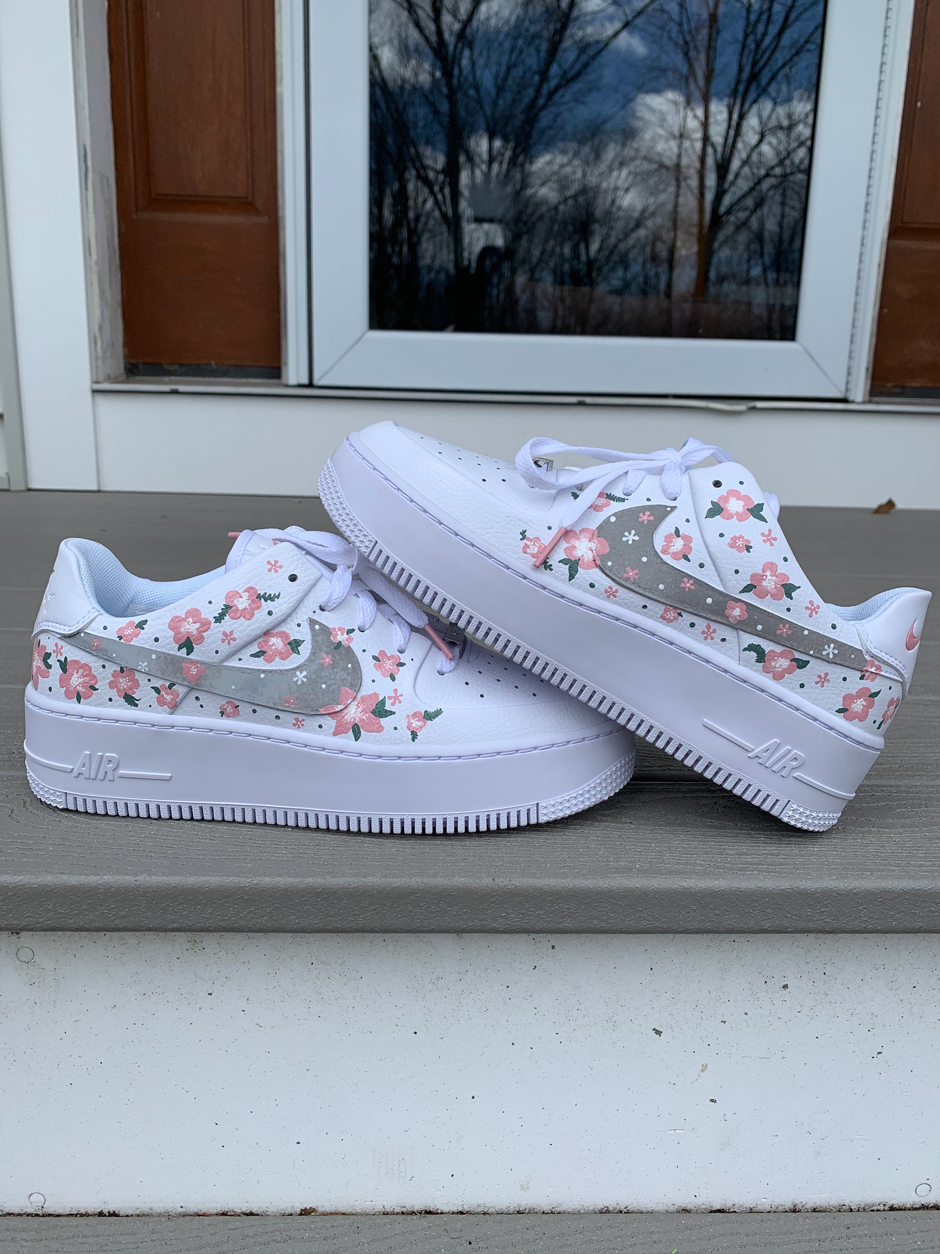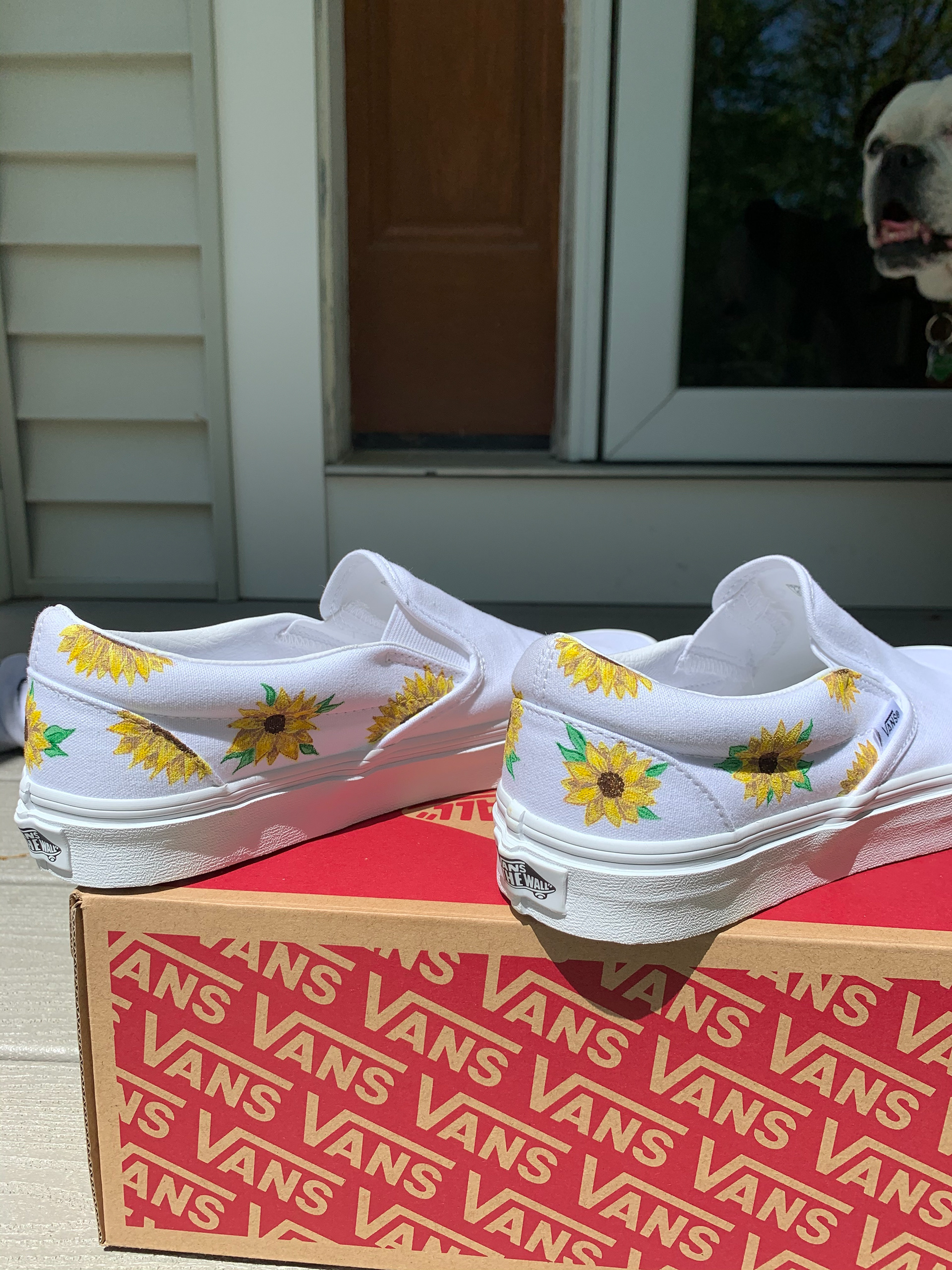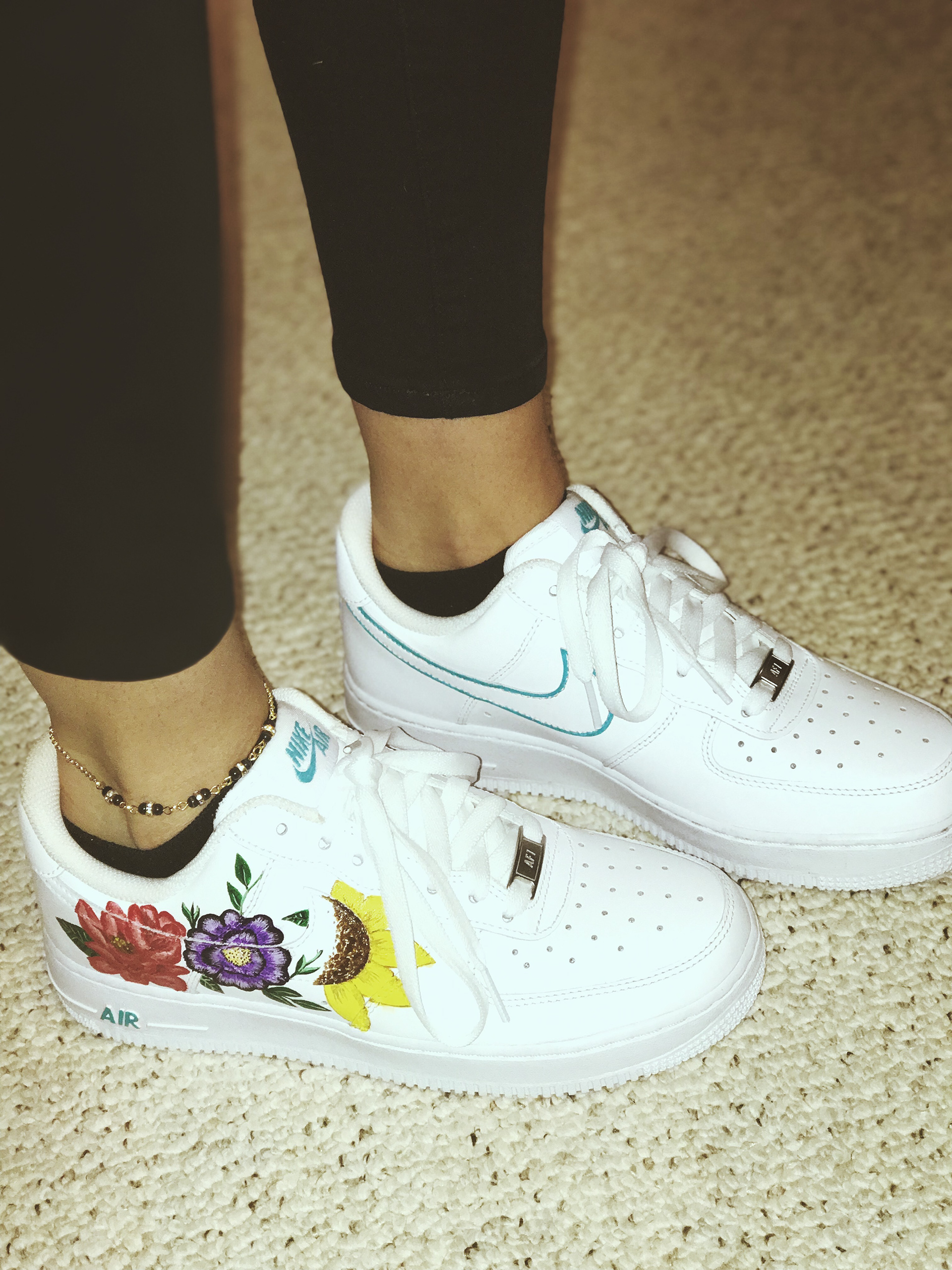 Mixed media creations, including custom sneaker art.